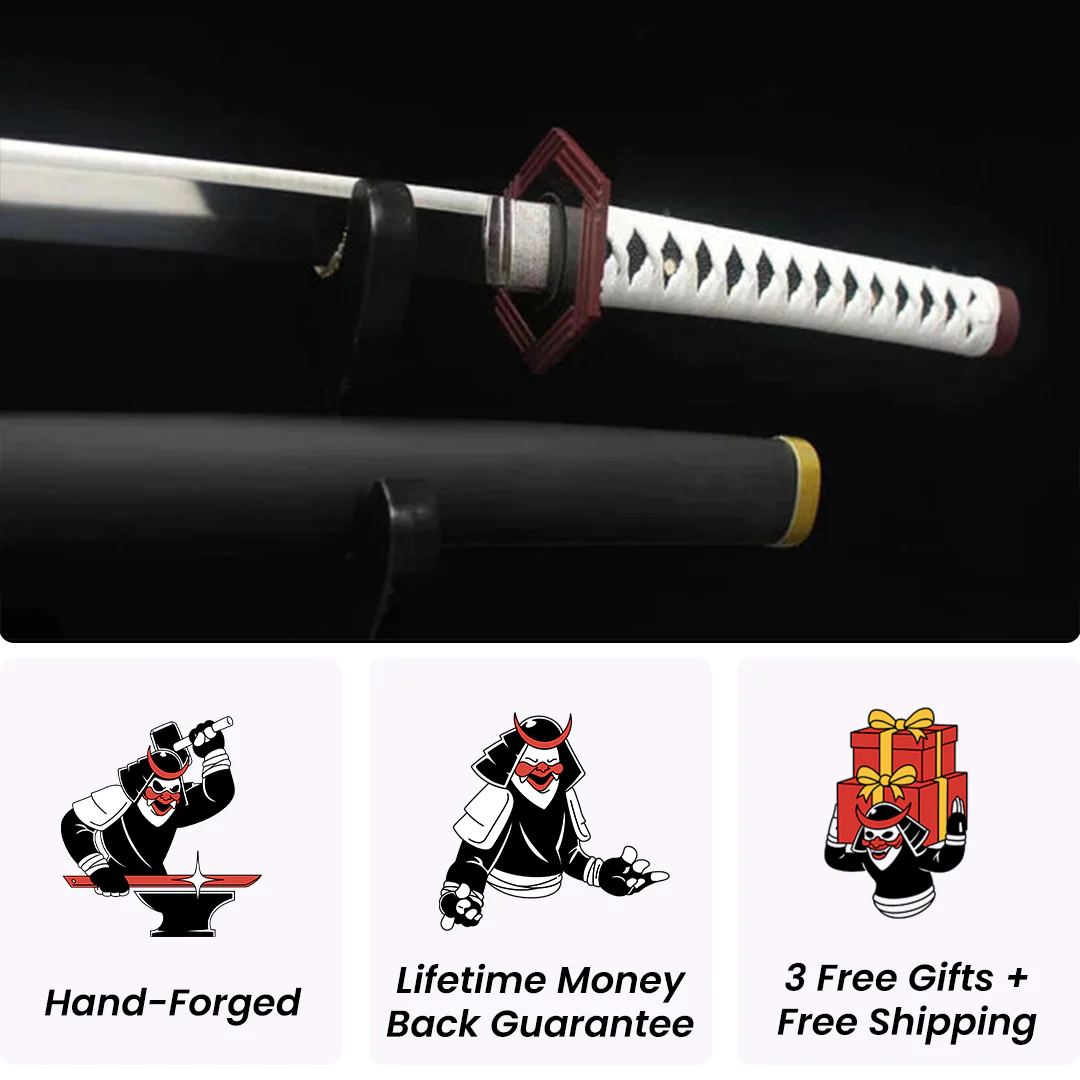 Discover the Giyu Tomioka Katana in 1060 carbon steel, an exceptionally sharp blade hand-forged with meticulous attention to detail. Inspired by Demon Slayer, this Japanese katana is an artisanal masterpiece. Perfect for Demon Slayer fans! Join our samurai army!