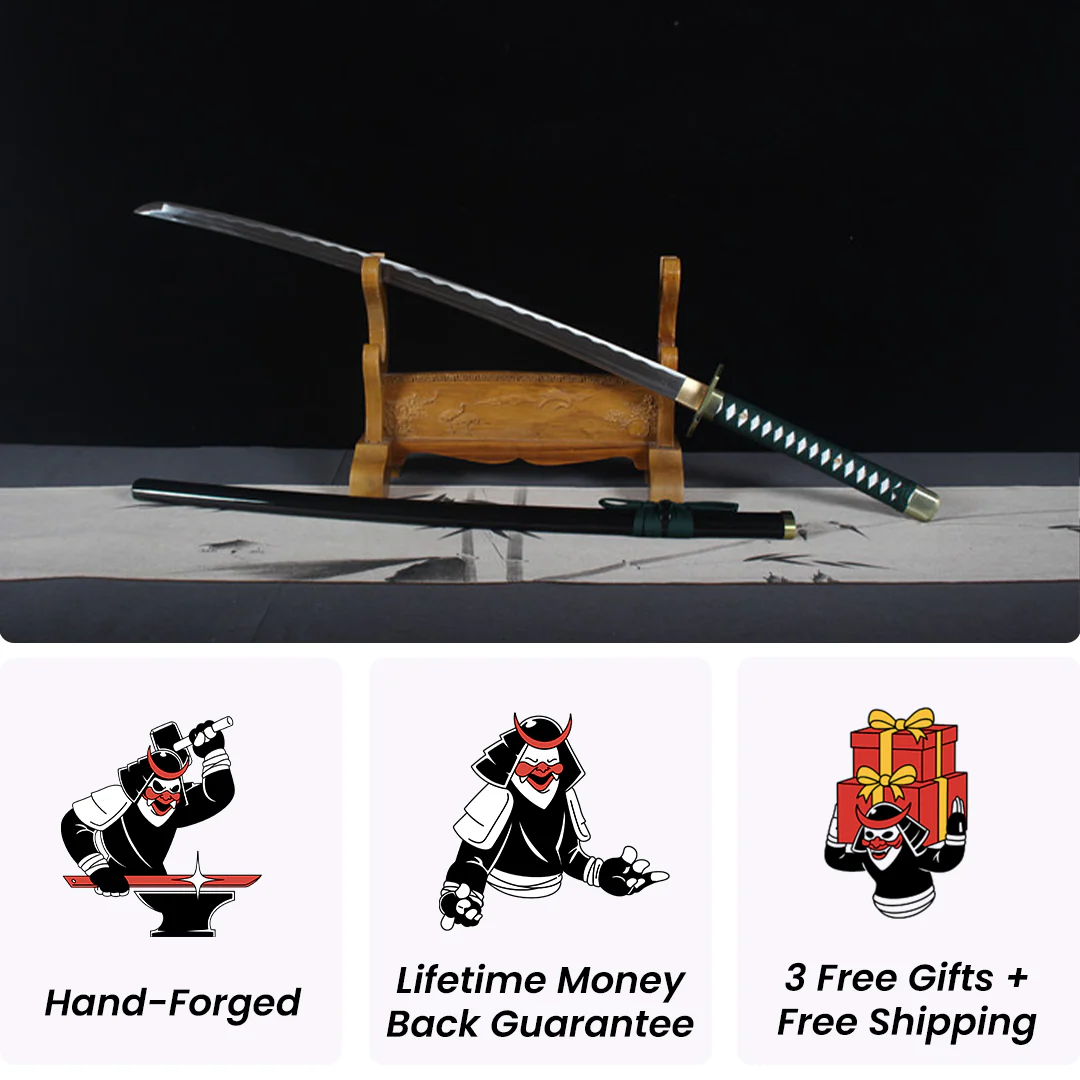 Discover the Kyoka Suigetsu Zanpakuto Katana of Aizen Sosuke, hand-forged by our artisans. An authentic samurai sword in Carbon Steel, inspired by the world of Japanese katana and Bleach. Handcrafted forge for excellence. Perfect for Bleach fans!